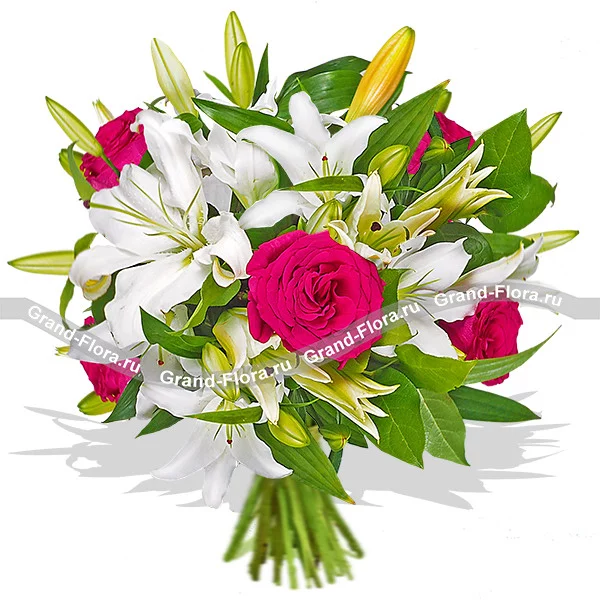 Прекрасная возможность преподнести ранним утром нежный букет из лилий и роз. Сделать день запоминающимся просто так - без повода! Или вручить букет в качестве извинения, котрый будет радовать получателя не меньше 7 дней*.