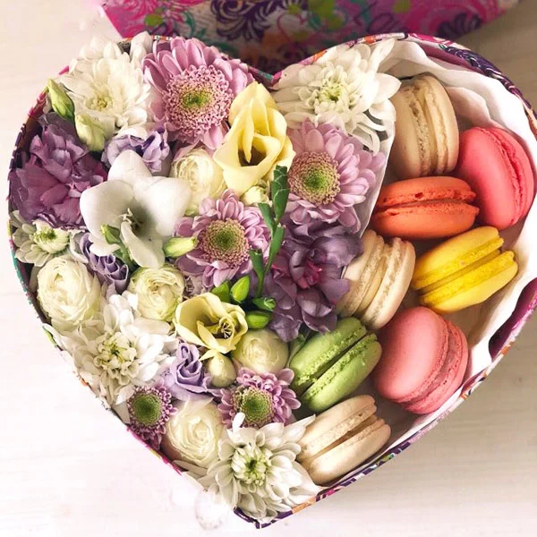 Коробочка романтики - коробка в виде сердца с розами и макарунс