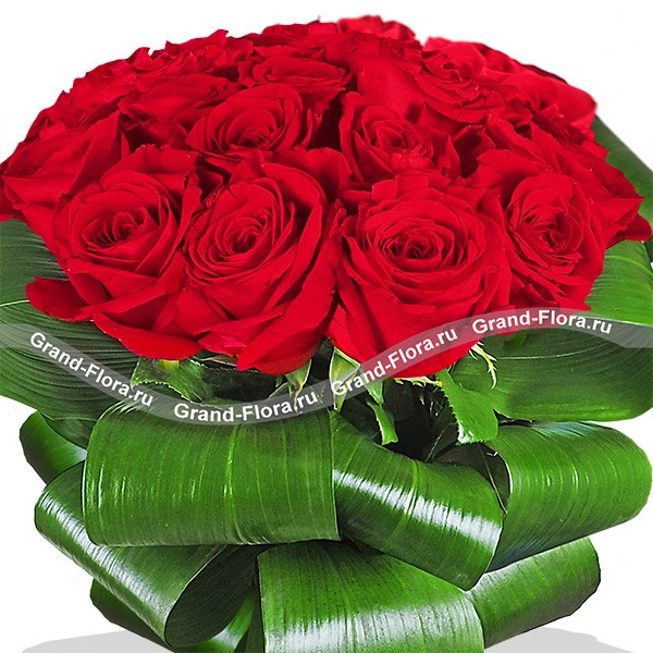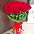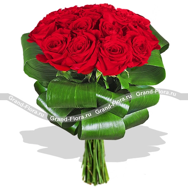 21 роза: роза красная - 21 шт. (Эквадор), лист аспидистры - 4 шт., упаковка, лента.