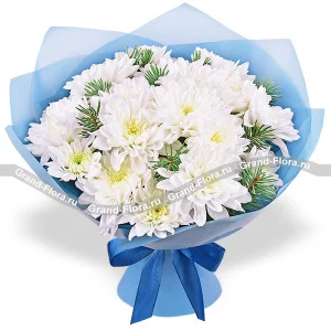 Стандартный: роза розовая - 7 шт., эустома белая - 6 шт., хлопок - 4 шт., ель, мини шарики - 4 шт., оазис, коробка, лента.